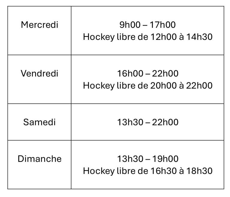 Fermeture prévisionnelle de la patinoire le 29 mars 2026.