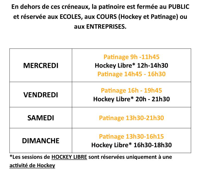 📅 Horaires d'ouverture public patinoire